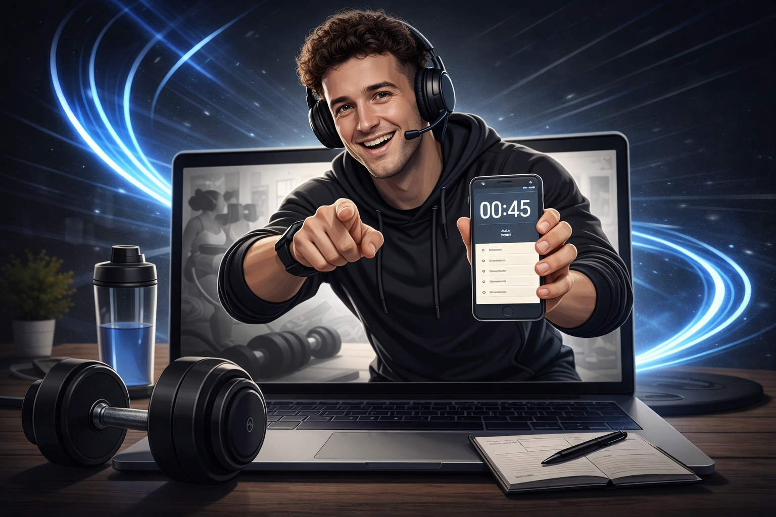 - Onboarding i cele — krótki formularz, historia treningowa, dostępny sprzęt, zdrowie.